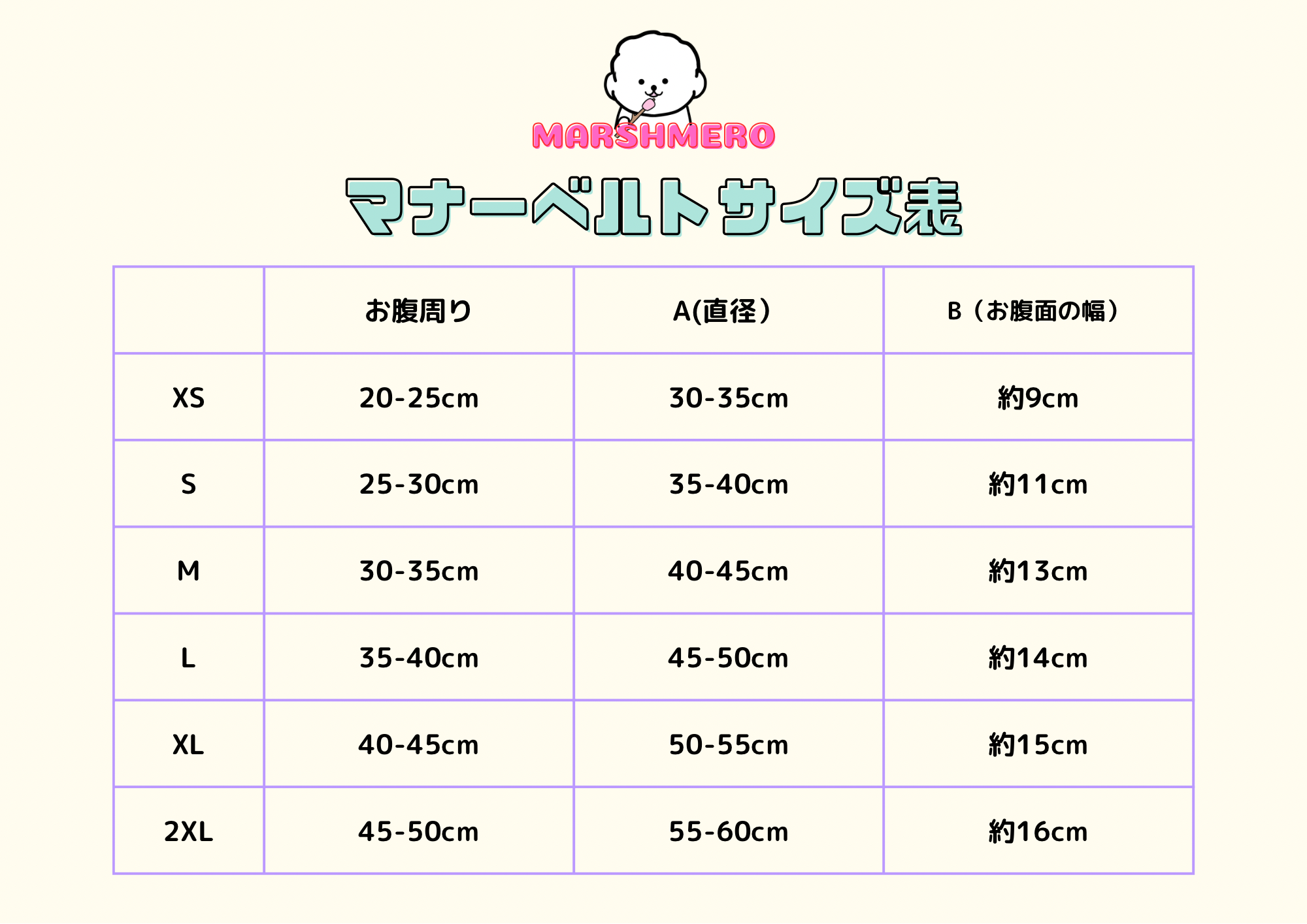 腰回り(大事な所含めて計測)+10cm前後(A:ベルトの全長)を目安に選んでいただくといいです。