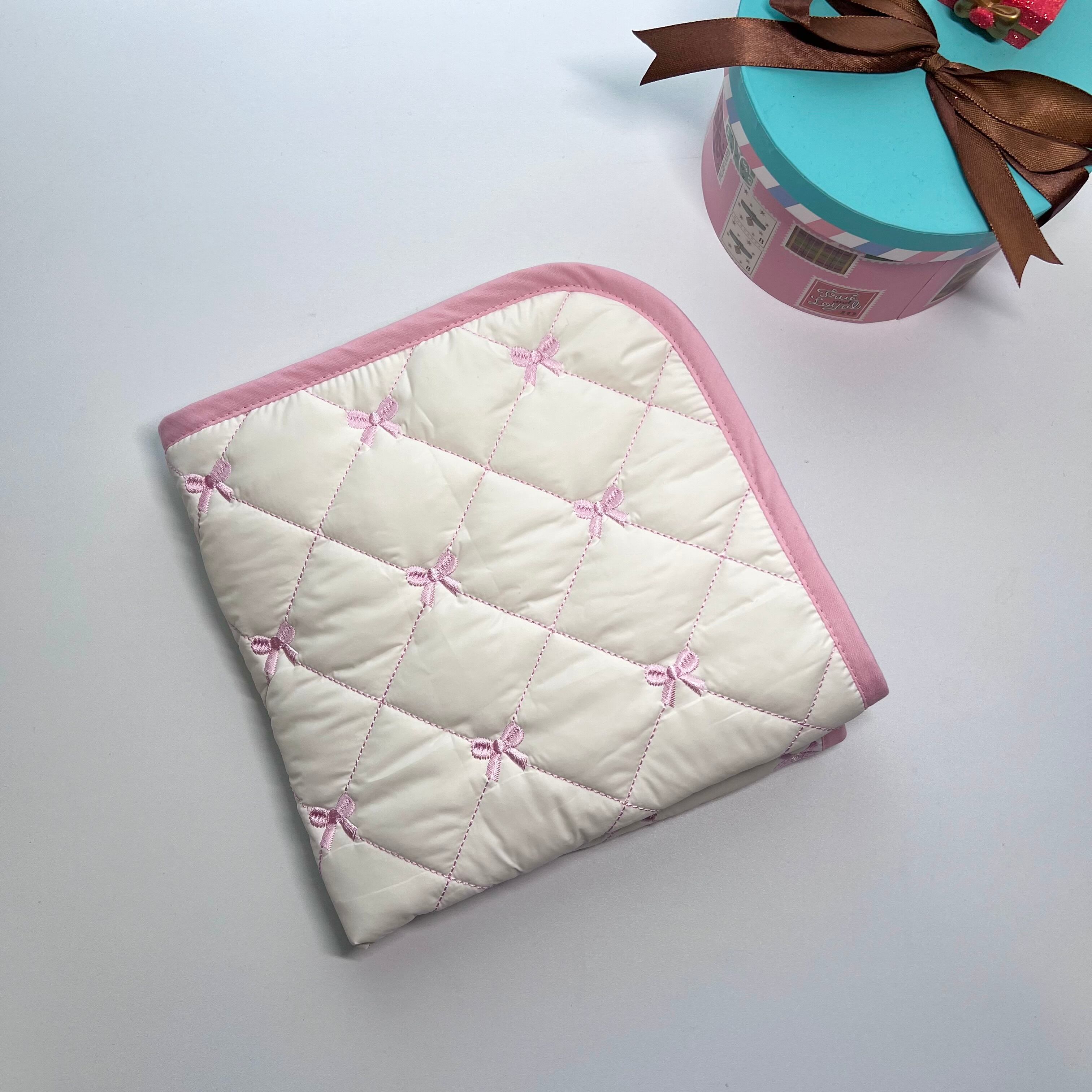 ふわふわでしっとりとした手触りが特徴のキルティングカフェマットです!アイボリーに淡いピンクの刺繍リボンがとってもラブリーです
